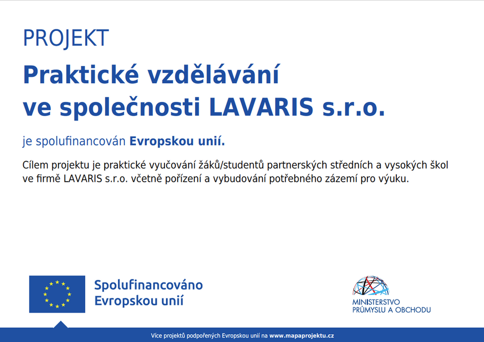 “Tento projekt "Praktické vzdělávání ve společnosti LAVARIS s.r.o." je spolufinancován Evropskou unií.“